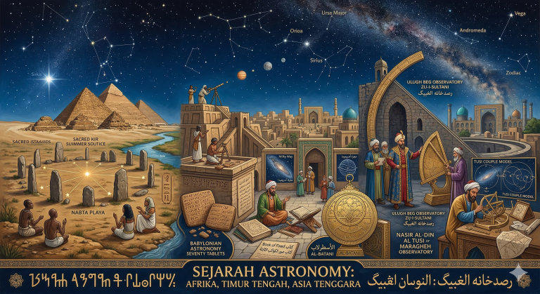 Astronomi adalah salah satu ilmu tertua di dunia, lahir dari kebutuhan manusia untuk memahami navigasi, kalender pertanian, dan aspek spiritual. Di wilayah Afrika, Timur Tengah, dan Asia Tengah, pengamatan langit mencapai tingkat presisi yang luar biasa jauh sebelum penemuan teleskop.
