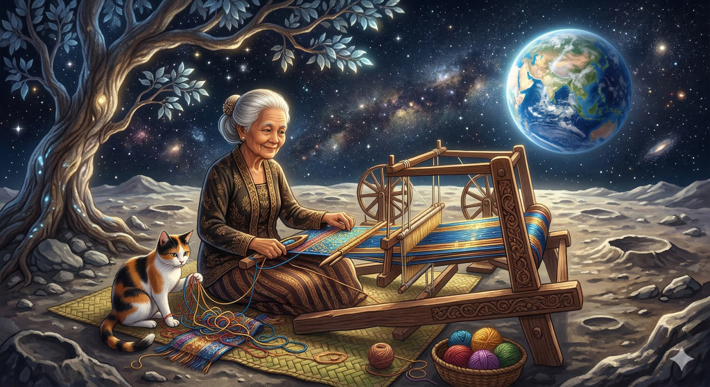 The story of Nini Anteh is one of the most poetic folktales from West Java. If you look at the full moon and see a faint shadow resembling a woman weaving next to a cat, the Sundanese believe it is Nini Anteh.